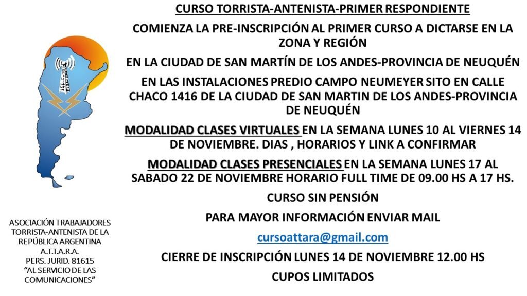 CURSO TORRISTA-ANTENISTA-PRIMER RESPONDIENTE GRAL PICO-LA PAMPA 2025 Cursos Antenista / Marcelo Patiño CURSO TORRISTA-ANTENISTA-PRIMER RESPONDIENTE GRAL PICO-LA PAMPA 2025 Leer más »